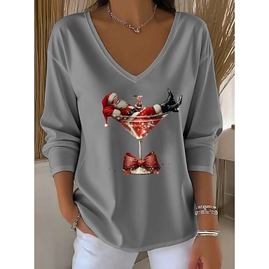 Χριστούγεννα Γυναικεία Μπλουζάκι Γραφική Άγιος Βασίλης Χριστούγεννα Κομψό Βίντατζ Μοντέρνα Μακρυμάνικο Λαιμόκοψη V Κανονικά μπλουζάκια Καθημερινά Σαββατοκύριακο Στάμπα