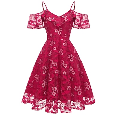 A-Line Knee Length Prom Dresses Elegant Vintage Short Sleeve V Neck Wedding Guest Graduation Lace with Lace Insert Pattern / Print