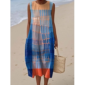 Women's Midi Dress Sundress Shift Dress A Line Dress Vacation Casual Boho Beach Going out Loose Fit Graphic Geometric Abstract Sleeveless Crewneck Blue Black Light Purple Summer Spring