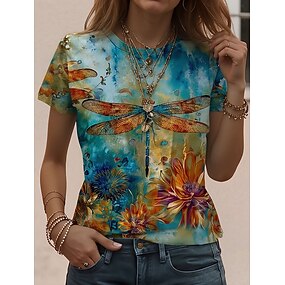 Women's T Shirt Print Graphic Animal Abstract Vintage Stylish Classic Short Sleeve Crew Neck Round Neck Regular Tops Daily Weekend Blue Light Green Dark Green Summer Spring Fall Winter