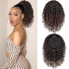 Ponytail Extension 10 Inch Drawstring Ponytail Hair Extensions for Women Natural Black Short Kinky Curly Ponytail Fake Hairpiece Daily Party Use