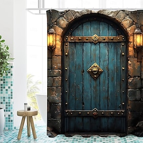 ווילון מקלחת עם 12 ווים 180 ס"מ * 180 ס"מ (70" * 70") פוליאסטר שניתן לכבס במכונה עמיד במים עם מוטיב של דלת כפרית מדרום