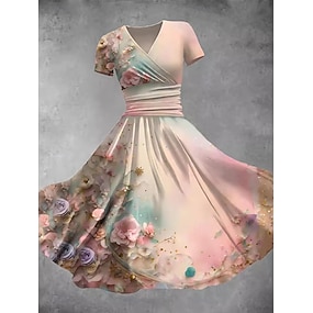 בגדי ריקוד נשים שמלת מידי שמלה עם כיווץ במותן שמלת קיץ שמלת Fit And Flare מסיבה יום יומי יומי חגים רגיל פרחוני גראפי שרוולים קצרים צווארון V שחור לבן כתום קיץ