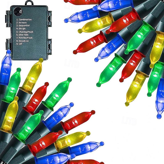 1 אריזת אורות מופעלים על ידי סוללות 18 רגל 50 נורות LED 8 מצבים אורות מיני LED עם טיימר עבור עצי מסיבת כינון בית חוץ קישוט עמיד במים לבן חם/לבן