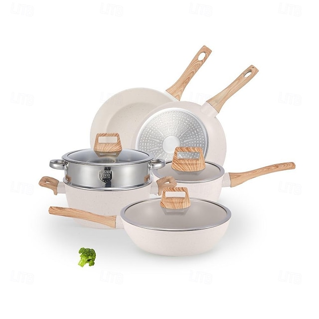 סט סירים ומחבתות 12 חלקים, סט כלי בישול נון-סטיק, לבן