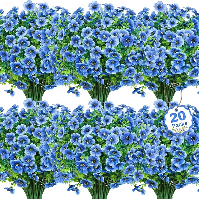 20 חבילות פרחים מלאכותיים לקישוט בחוץ פרחי משי מזויפים עמידים בפני uv צמחי מלאכותי מלאכותי דייזי אקליפטוס לאביב קיץ גן חצר מרפסת חלון עיצוב בית לערבב צבעים