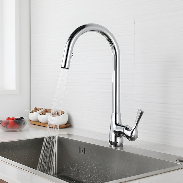 ברז מטבח עם תרסיס נשלף - ידית אחת חור אחד מצופה אלקטרוניקה / גימורים צבועים נשלף / נשלף / פיה סטנדרטית / סט מרכזי קשת גבוה / מודרני מודרני עכשווי ברזי מטבח