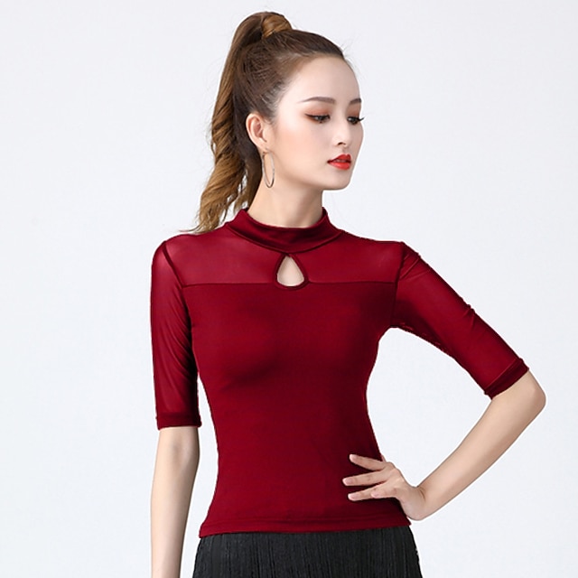 ריקוד לטיני עליון מוצק שחבור בגדי ריקוד נשים הדרכה הצגה חצי שרוול גבוה ספנדקס