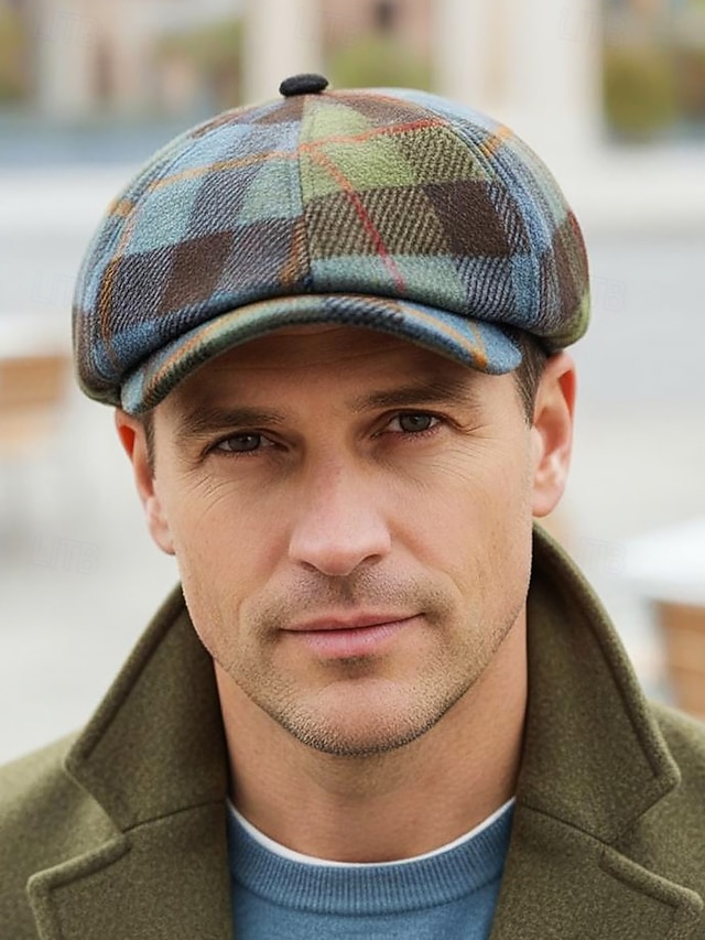 כובע עיתון בריטי משובץ וינטג' לגברים – חומר פוליאסטר, צבעים מרובים, סגנון רטרו קלאסי ללבישה יומיומית וחיצונית