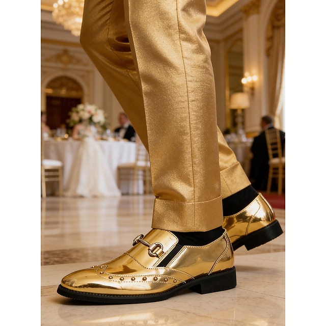 נעלי לואפר זהובות לגברים – נעליים אלגנטיות עם אבזם דקורטיבי, אידיאליות לאירועים רשמיים, מסיבות וחתונות