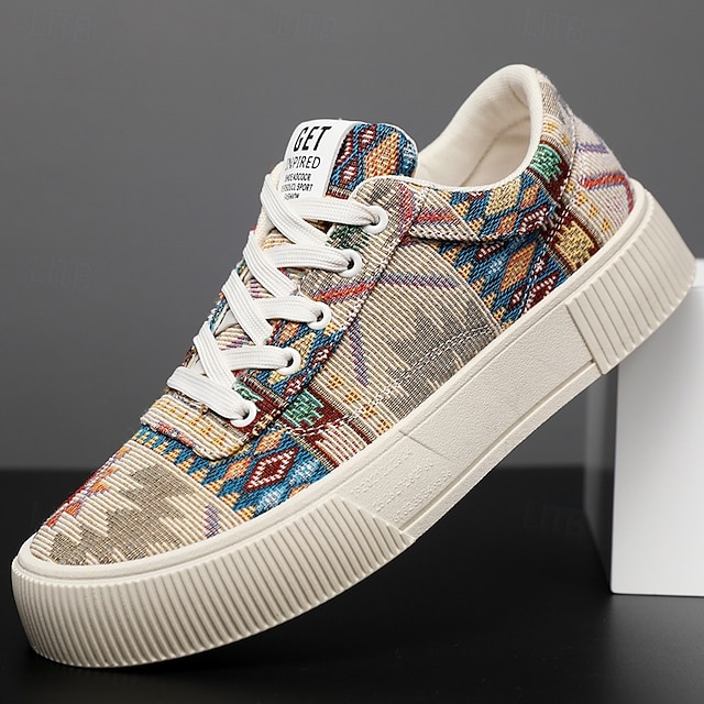 נעלי ספורט צבעוניות לגברים בדוגמאות שבטיות - נעלי קז'ואל אופנתיות עם שרוכים ללבוש יומיומי ולפעילויות חוצות