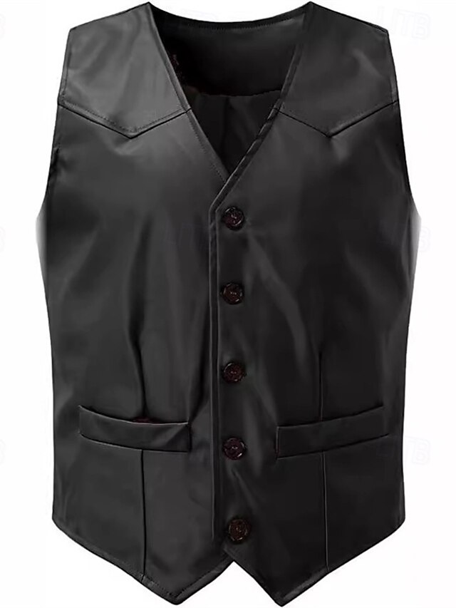 בגדי ריקוד גברים וסט Gilet אפוד עור יומי פגישה (דייט) חופשה אופנתי יום יומי קיץ & אביב לַחְצָן כיס פוליאסטר נוח אחיד חזה יחיד כפתור יחיד צווארון V רגיל שחור בורגנדי קאמל אֵפוֹד