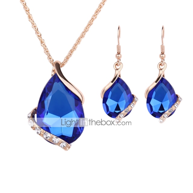 סט תכשיטים עגילי טיפה For בגדי ריקוד נשים ספיר קריסטל מפלגה חתונה יומי רוז גולד קריסטל אבן נוצצת אגס סוליטר טיפה אדום כחול ירוק / שרשראות תליון / שרשרת / עגילים / אָהוּב