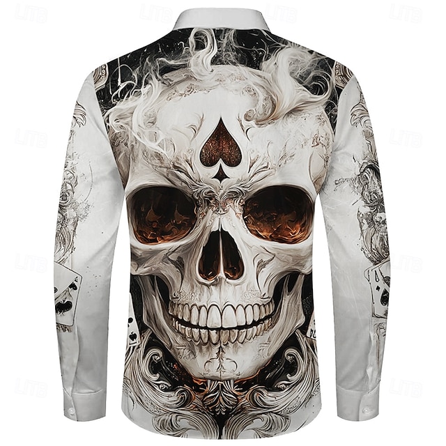 בגדי ריקוד גברים גוגולות חולצה עם כפתורים שרוול ארוך אופנה קז'ואל כהה בגדי ערב למסיבה רחוב יומי סתיו חורף אביב קיץ צווארון חולצה כפתור למעלה הדפסת תלת מימד לבן