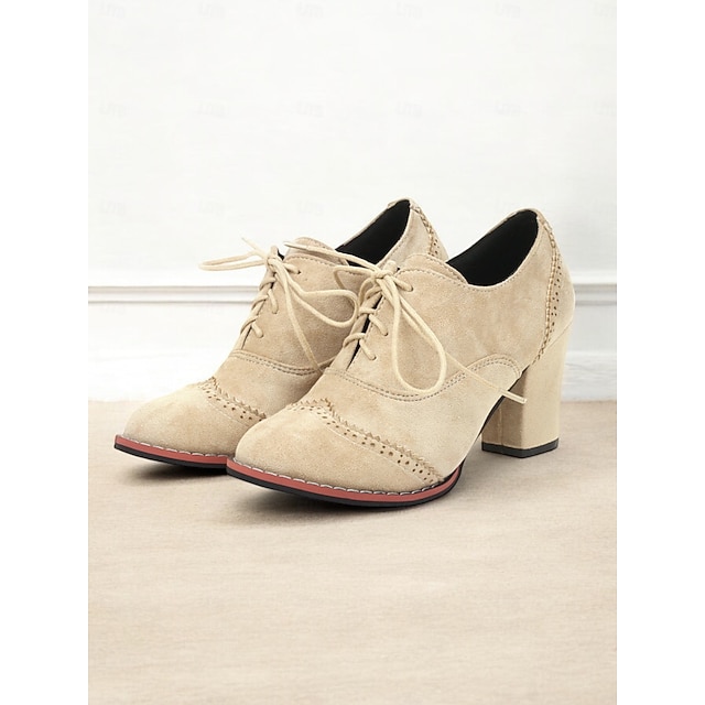 נעלי אוקספורד מלאכותיות זמש מלאכותיות עם נעלי עקב - משאבות ברוק בסגנון וינטג' ללבוש קז'ואל ומשרדי