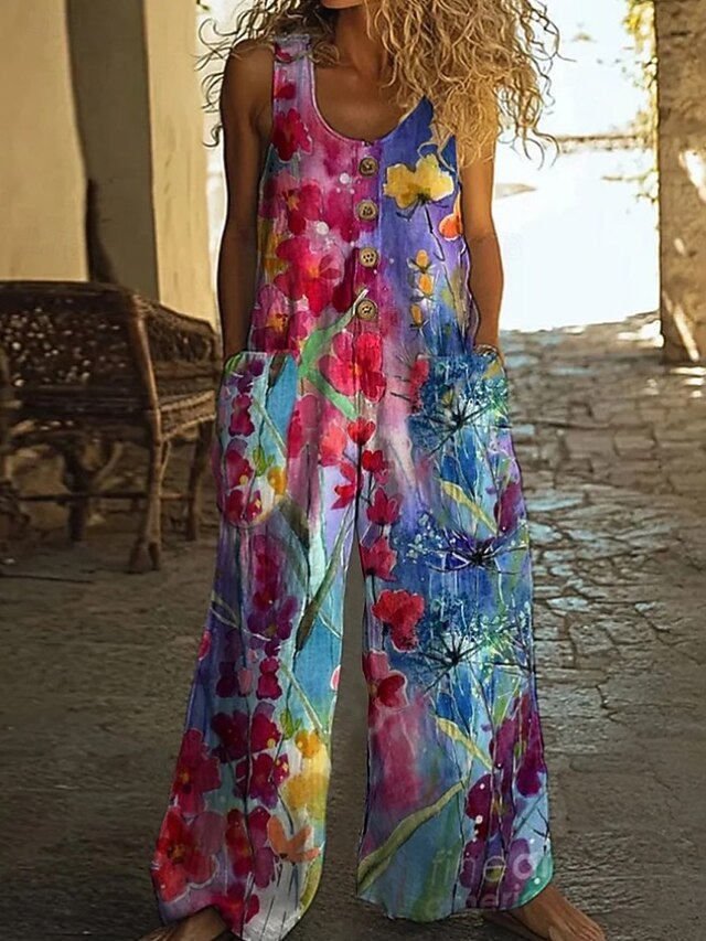 בגדי ריקוד נשים באופן כללי פעיל פרחוני ללא שרוולים רגל רחבה צווארון עגול טלאים יומי חופשה מונח בצורה רפויה פול סגול קיץ