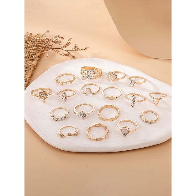 סט טבעות סגסוגת בסגנון בוהמי לנשים, עיצובים מרובי צבעים, גימור זהב, מושלם ללבישה יומיומית, חופשה וטיולים
