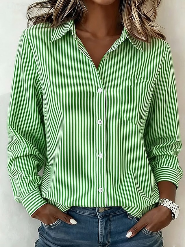 בגדי ריקוד נשים חולצה טלאים כפתורים דפוס גראפי גיאומטרי משובץ וינטאג' טרופי יומי שרוול ארוך צווארון חולצה חולצות ארוכות יומי פול תלתן קיץ אביב