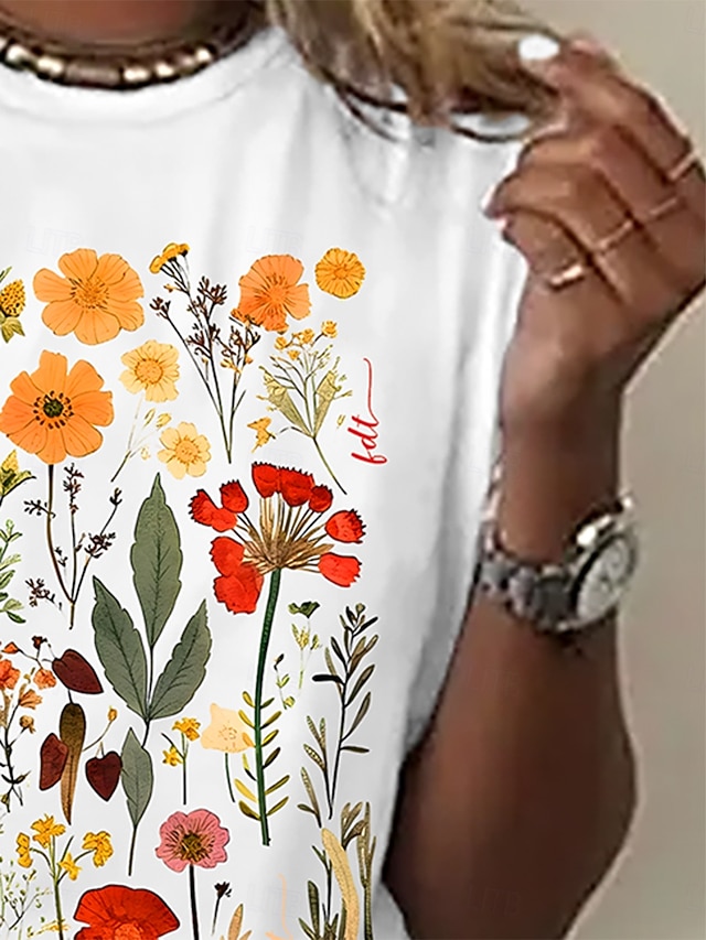 בגדי ריקוד נשים חולצה קצרה דפוס פרחוני בסיסי שרוולים קצרים צווארון עגול חולצות רגילות יומי סוף שבוע שחור לבן אפור קיץ