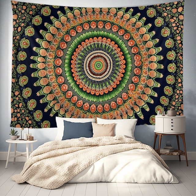 [בד]: עשוי בעבודת יד מחומר פוליאסטר קל משקל ואיכותי, טפט זה מציע עמידות ותחזוקה קלה, מה שמבטיח שהוא יישאר חיוני ושלם לאורך זמן. הטקסטורה הרכה והחלקה מאפשרת תלייה אלגנטית, מה שהופך אותו ליצירה דקורטיבית רב-שימושית. [דוגמא]: בעיצוב מנדלה בולט, טפט זה מתפאר בסידור מהמם של צבעים ירוקים, כתומים ושחורים ירוקים בעיגולים קונצנטריים. הדוגמא המורכבת והסימטרית תופסת את תשומת הלב ומוסיפה נופך בוהמי לכל סביבה. [הHighlights של העיצוב]: מוטיב המנדלה הנועז של הטפט מושלם עם פלטת הצבעים החיונית שלו, מה שיוצר יצירה מסקרנת וויזואלית שמשמשת כנקודת מרכזית מושלמת. הפרטים המורכבים של המנדלה מושכים את העין, מה שהופך את זה לא רק לקישוט, אלא ליצירת אמנות. [מקרים]: אידיאלי לשימוש במגוון סביבות, טפט זה יכול לשדרג חללים כמו חדרי שינה, סלונים ודירות סטודנטים. הרב-שימושיות שלו מאפשרת להשתמש בו כקישוט קיר, ככיסוי מיטה, מפה או אפילו שמיכת פיקניק, ומוסיפה יצירתיות ורוגע לכל סביבה. [גודל]: זמין בגודל generous של 150 ס"מ על 130 ס"מ (59 על 51 אינצ'ים), הוא מכסה שטח קיר רחב, מה שהופך אותו למתאים לאנשים המעוניינים לעשות הצהרה נועזת בעיצוב הבית שלהם.