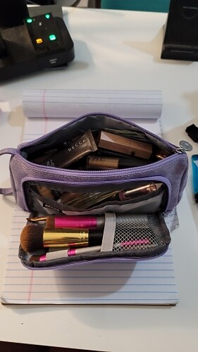 Almost perfect. Like other reviews said, \"why leave that gap on the inside so the stuff can roll out?\" Just didn\t make sense. But it\s pretty, holds a lot of makep yet still compact and cute. Nice handle to grab and go. Great price. Looks very durable. I put a comparison of my old free Elf bag so you can see the size Almost perfect. Like other reviews said, \"why leave that gap on the inside so the stuff can roll out?\" Just didn\t make sense. But it\s pretty, holds a lot of makep yet still compact and cute. Nice handle to grab and go. Great price. Looks very durable. I put a comparison of my old free Elf bag so you can see the size