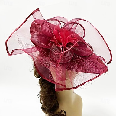 כובעי אורגנזה כובע שמש חתונה חופשה מסיבת תה מירוץ סוסים קוקטייל אלגנטי וינטג' חמוד עם קישוט פרחוני