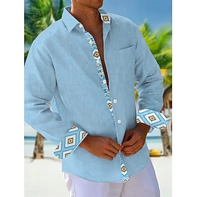 Men's Beach Shirt Button Up Shirt Long Sleeve Hawaiian Casual Vacation Daily Fall Winter Spring & Summer Collared Shirts 3D Print Black Blue Orange Light Blue