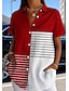 Női Ing V Nyakú Gombos Blúz Grafikus Csíkos Stílusos Tengerpart Rövid Ujjú Ing Gallér Normál Felsők Mindennapi Gombok Nyomtatott Rózsaszín Kék Zöld Szürke Tavasz Ősz