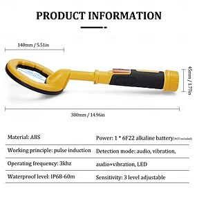 md-720 kézi fémdetektor - hordozható kincskereső rúd, 3 méterig vízálló, LED-es &rezgés