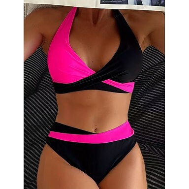 Női Bikini 2 részes Fürdőruha Színblokkolt Divatos Stílusos Grafikus Színblokk Ujjatlan Fürdőruhák
