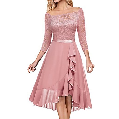 Női Midi ruha Csipkeruha Party ruha Koktélruha Esküvői vendég ruha Divat Buli Modern Vakáció Estély Esküvő Normál Tiszta szín Féhosszú Terített nyak Arcpír rózsaszín Bíbor Sötétkék Tavasz Ősz Tél