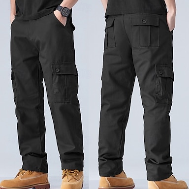 Férfi Cargo nadrág Taktikai nadrág Nadrág Gombok Többzsebes Egyenes lábbal Sima Viselhető Szabadtéri Napi Kempingezés és túrázás Divat Klasszikus Fekete Sárga
