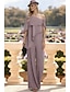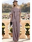 Kétrészes A-vonalú Földig érő Esküvői vendég ruha Örömanya ruha Hosszú ujj Csónaknyak Elegáns Egyszerű Pazar Előírásos Szatén Organza val vel Kristály díszítés