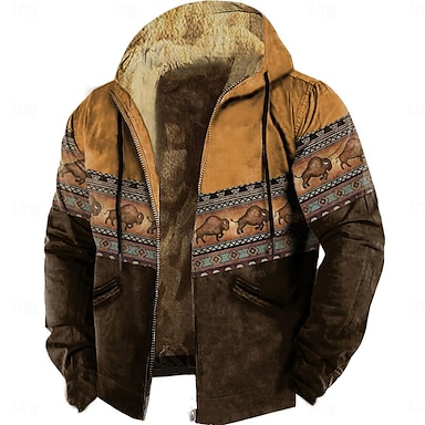 Férfi Állat Színes Grafikai nyomatok Kapucnis felsőrész Kapucnis felsők Pulóver Dizájn Vékony gyapjú Hosszú ujj Kapucni Hétköznapi Napi Szabadság Barna Barna 2 Barna 4 Barna 3 Cipzár Nyomtatott Tél