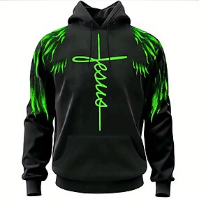 Férfi Brojke Grafikai nyomatok Kapucnis felsőrész Kapucnis felsők Pulóver Utcai sikk Dizájn Alap Alkalmi Nagy és magas Hosszú ujj Kapucni Sport & Szabadtéri Napi Sport Szabadság Világoszöld Medence