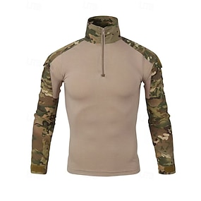 Férfi Félig cipzáras pulóver Katonai pulóver Hosszú ujj Állógallér Felsők Külső Légáteresztő Pamut keverék álcázás Stétszürke Python Fekete Fekete Utazás Futás