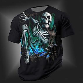 Férfi Unisex Koponya Grafikai Nyomatok Póló Vicces Pólók Rövid Ujjú Póló 3D Nyomtatott Kerek Nyakú Póló Tervező Hétköznapi Nagy és Magas Napi Nyaralás Fekete Kék Zöld Nyári Ruházat