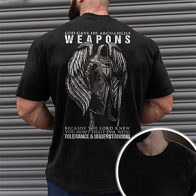 Férfi Rövid ujjú Grafikus Póló Angyal Harcos "Isten fegyvereket adott az arkangyalainak" Életstílus állítás póló