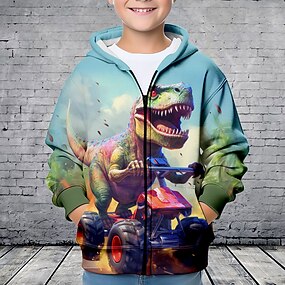 Fiú 3D Rajzfilm Dinoszaurus Futball Kapucnis felsőrész Kabát Ruházat Hosszú ujj Ősz Tél Aktív Utcai sikk Menő Poliészter Gyerekek 3-12 év Cipzár Utca Napi Normál