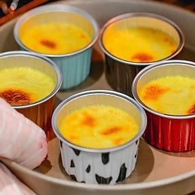 50 db-os alumínium fólia sütőpohár, eldobható tojásos pite sütőformák, forrólevegős sütőben használható fólia ramekinek, kis alumínium tálak grillezéshez, sütőben való sütéshez, pirításhoz és