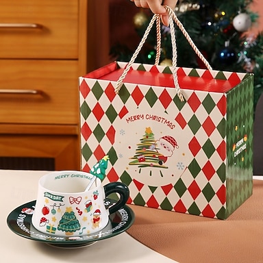 karácsonyi ajándék bögrekészlet, ünnepi kerámia kávéscsésze és csészealj ajándékdoboz, tökéletes karácsonyi és újévi ajándék, irodai bögre, praktikus ünnepi italkészlet barátoknak és családtagoknak
