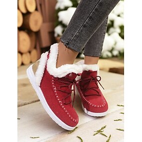 Női Csizmák Hócipők Fűzős csizmák Téli csizma Karácsony Napi Gyapjú bélelt Csizmák Bokacsizmák Lapos Kerek orrú Alkalmi Műszőrme Ruhaanyag Papucs Fekete Rózsaszín Piros