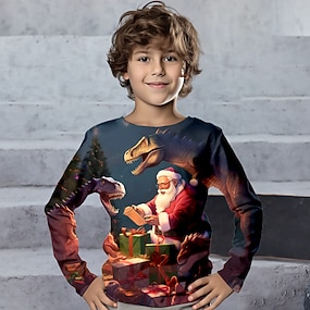 Karácsony Fiú 3D Mikulás Dinoszaurus Karácsonyi póló Póló Ingek Hosszú ujj 3D nyomtatás Ősz Tél Sportok Divat Utcai sikk Poliészter Gyerekek 3-12 év Terített nyak Szabadtéri Hétköznapi Napi Normál