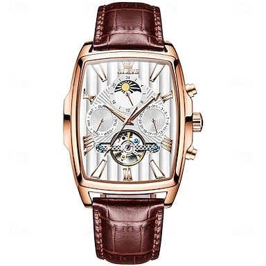 OLEVS Férfi Mechanikus Óra Divatos Hétköznapi Karóra Automatikus Önfelhúzó Holdfázis Luminous Naptár Bőr Óra