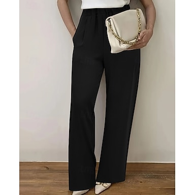 Női Széles lábszár Nadrágok Utcai sikk Munkahelyi Hosszú Magas derék Sima Zseb Magas vágás Lélegzési képesség Mekano Mikroelasztikus Vakáció Utca Hétköznapi viselet Fekete Fehér Sárga Rózsaszín Nyár