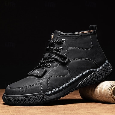 férfi alkalmi fűzős bokacsizma – műbőr, kézzel készített mokaszin stílusú szabadtéri cipő kézzel varrott részletekkel és csúszásmentes talppal túrázáshoz és mindennapi viselethez