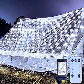 Napelem Háló Lámpa Háló Tündér Fűzér Lámpa 6x4 880led IP65 Vízálló Girland 8 Móddal Időzítő Távvezérlővel Kertbe Udvarra Ünnepi Dekor Színes Fűzér Világítás