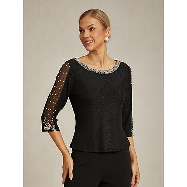 Női Öltözetes felsők Strassz Fémes Illúzió Elegáns Napi hölgyek Háromnegyedes Terített nyak Normál felsők Esküvői vendég Party estélyi viselet Félig formális Fekete Tavasz Ősz Tél