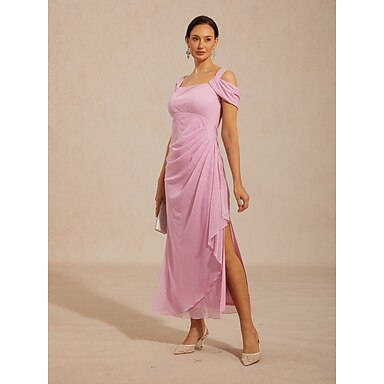 Női Maxiruha Hüvelyruha Elegáns Esküvői vendég Koktélparty Fodrozott Csillogó tüll Aszimmetrikus Normál Tömör szín Ujjatlan Pántos hideg váll Arcpír rózsaszín