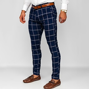 Férfi Nadrág Pamutszövet nadrág Chino nadrág Zseb Kockás Mokaszinok Légáteresztő Szabadtéri Napi Alkalmi Divat Alkalmi Sötét Khaki Fekete